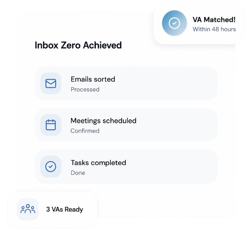 Your VA handles 80% of comms, drafts replies, and only flags what truly needs you.